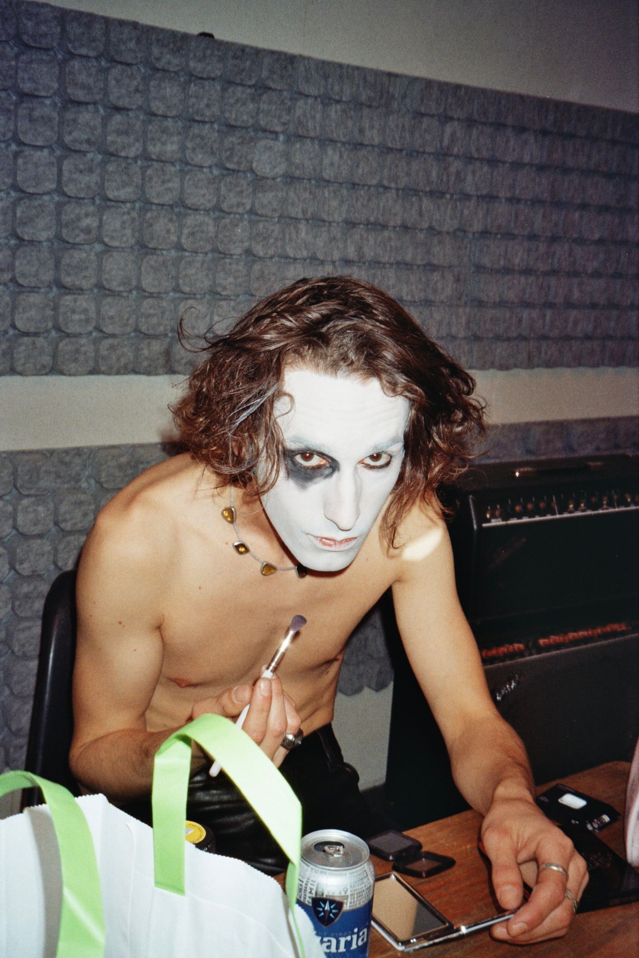 “Ik ben een beetje wagenziek,” grapt bassist Emma (25) terwijl ze haar bleke foundation in de auto opsmeert. Het is een kleine twee uur rijden naar Tilburg voor Dear Omen, ideaal voor het aanbrengen van hun kenmerkende gothic look. Frontvrouw Fay (28), leadzangeres en pianist/farfisa (een orgel, maar geen orgel!), legt uit hoe de look van tot stand is gekomen: “De band bestaat al vijf jaar, maar met deze bezetting pas een jaar. Onze eerste show in deze opstelling was op Halloween, daar probeerden we ook de look. Ik voelde me altijd al aangetrokken tot de gothic esthetiek. Die duistere kant had ik al van kinds af aan, in plaats van prinsessenfeestjes gaf ik heksenfeestjes. Het past gewoon goed bij wat wij willen overbrengen met onze muziek, dus we bleven het doen.”
